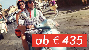 ![]() La Bella Italia, quer durch die Toskana mit der Vespa oder Cinquecento Cabrio Erleben Sie die Toskana unterwegs mit einer Vespa oder einem Fiat 500 Cabrio in 6 Tagen und 5 Nächten im Doppelzimmer mit Frühstück |